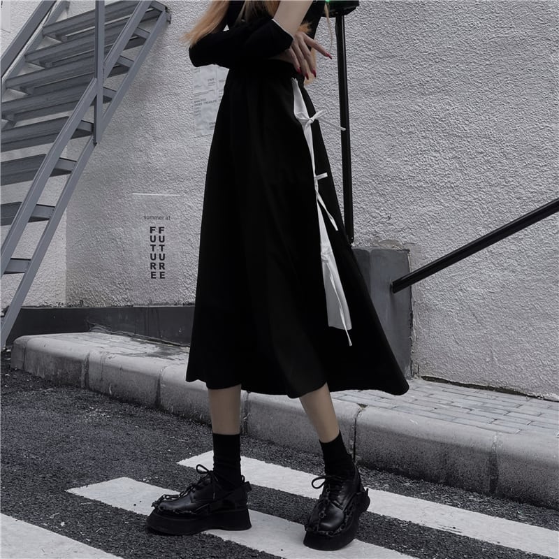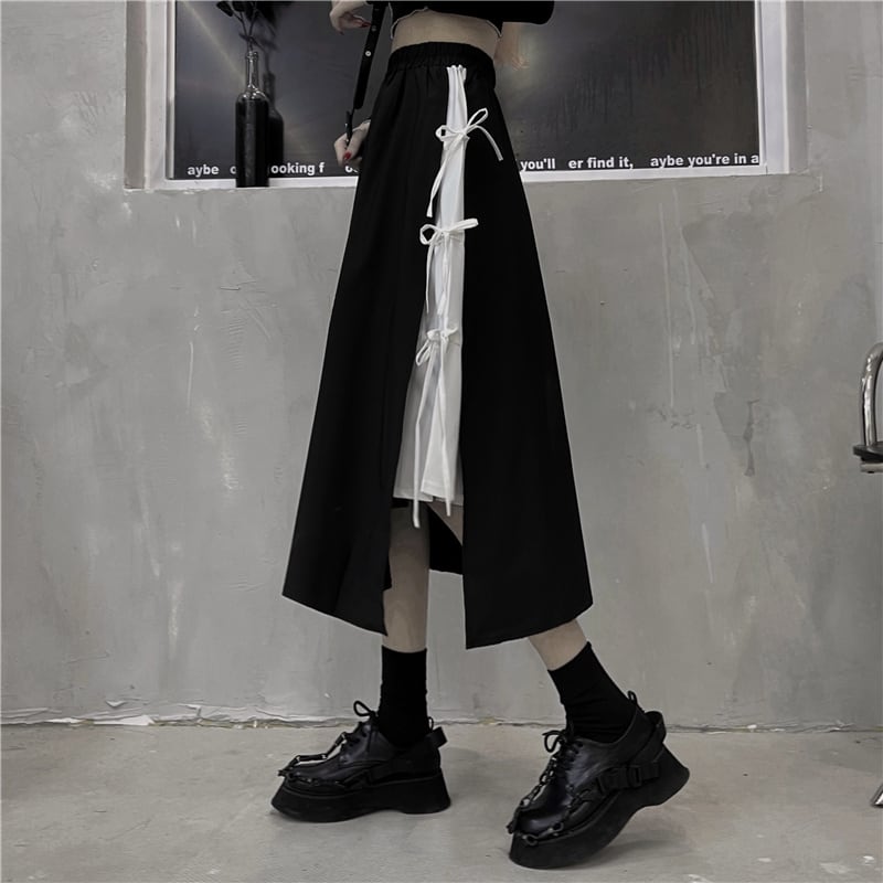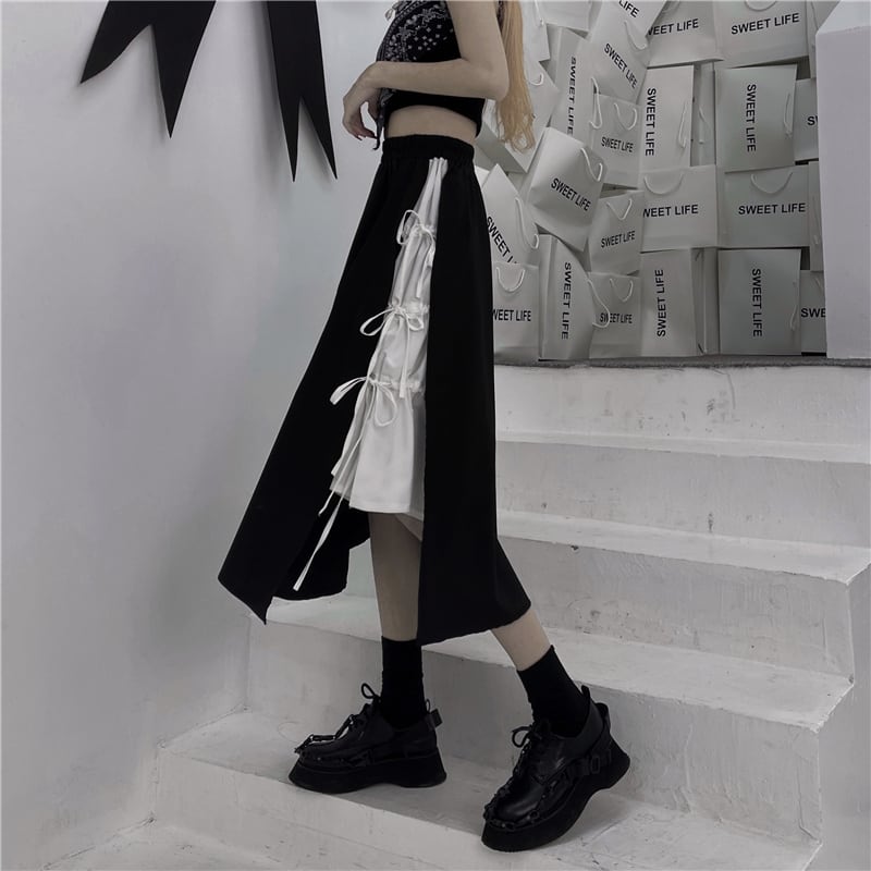 サブカル 服 地雷系 通販 フレアスカート ロング丈 ハイウエスト Aライン サイドスリット バイカラー 闇かわいい ゴスロリ 原宿女子 韓国系