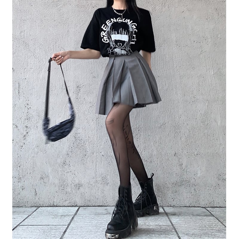 プリーツミニとコーデして病み可愛いストリートスタイルがおしゃれ