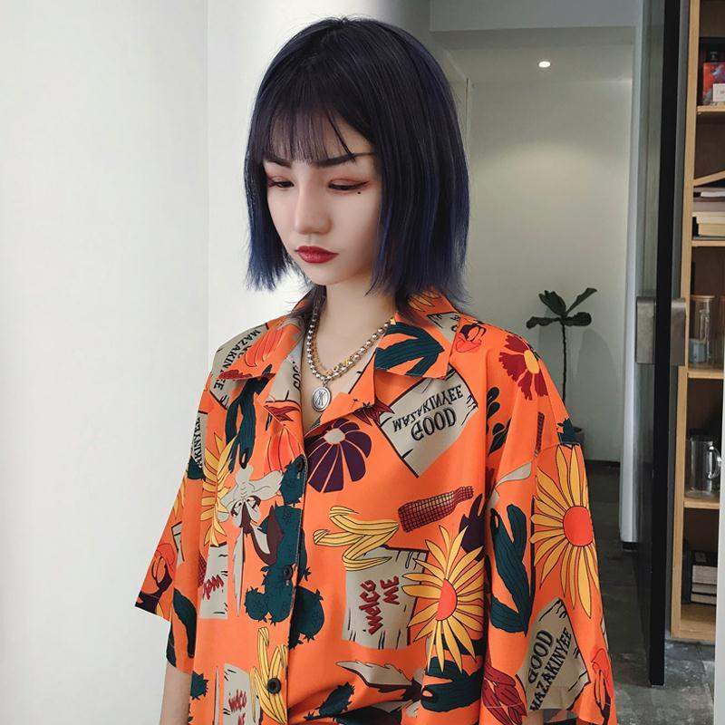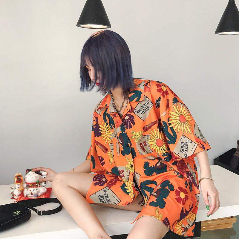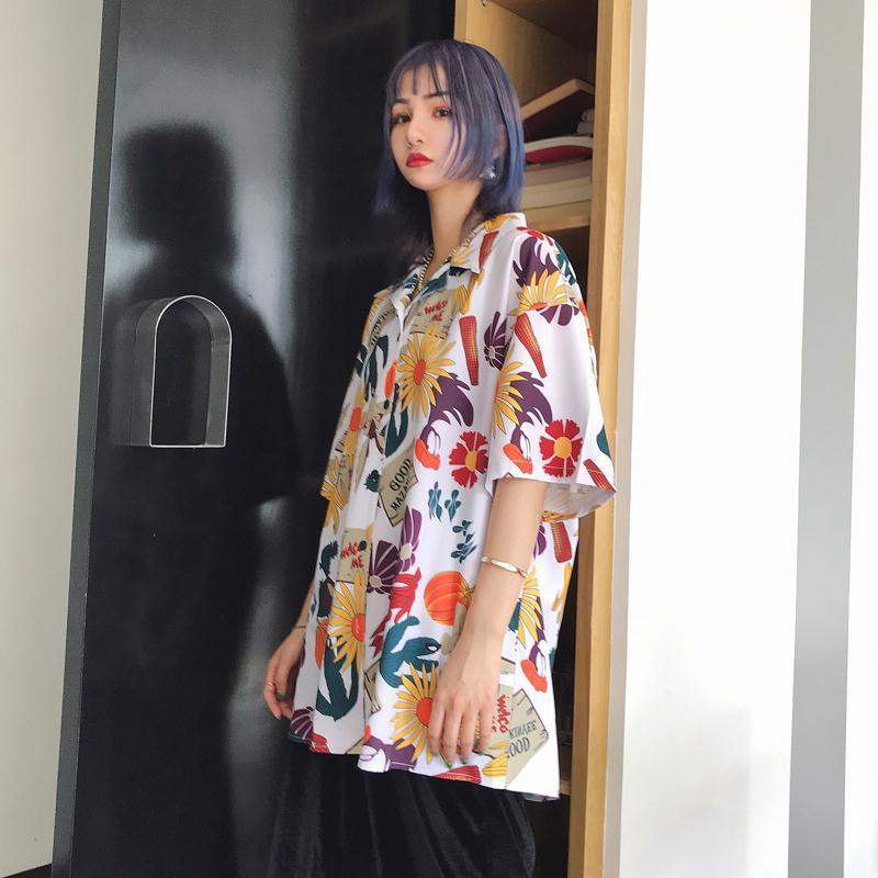 サブカル 服 地雷系 通販 アロハシャツ 花柄 レトロ ヴィンテージ風 ルーズカジュアル