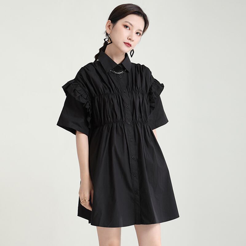 サブカル 服 地雷系 通販 シャツ フリル ギャザー ドロップショルダー 大人きれいめ モード系 カジュアル