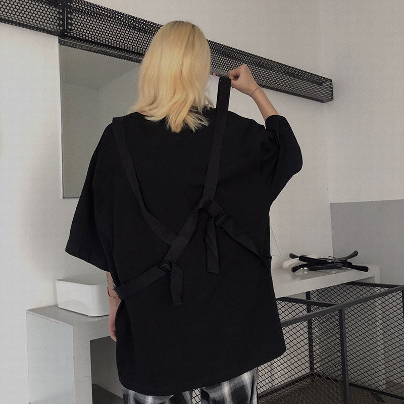 サブカル 服 地雷系 通販 闇かわいい 半袖Tシャツ ショルダーストラップ バックルベルト付き カジュアル