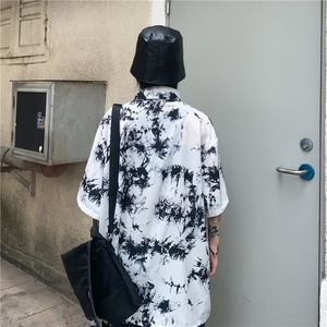 白シャツにインクが滲んだ様な絞り染柄、ユニセックスのトップスです