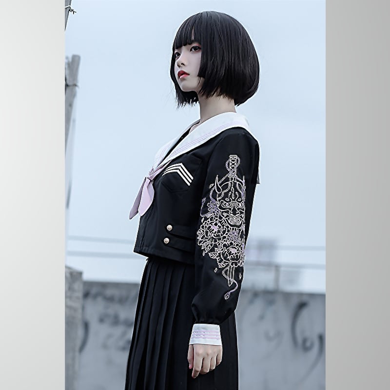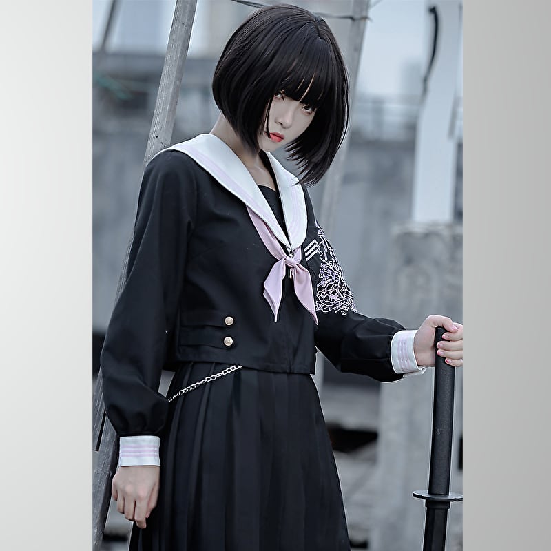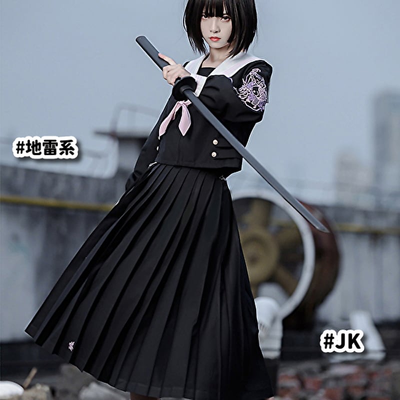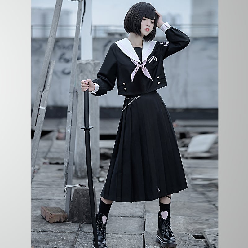 サブカル 服 地雷系 通販 闇かわいい JK制服 セーラー服 プリーツスカート チェーン付原宿女子