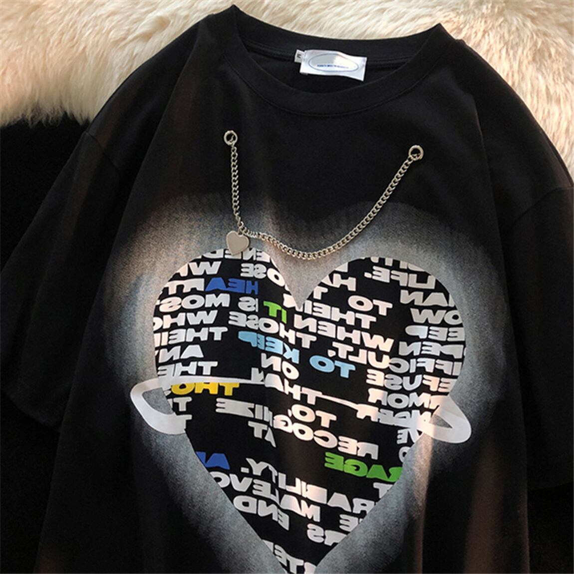 サブカル 服 地雷系 通販 Tシャツ 半袖 ハート ネックチェーン カジュアル