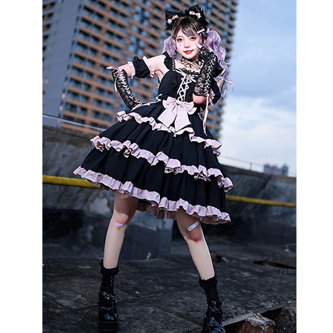 サブカル 服 地雷系 通販 ロリータ ドレス JSK レースアップ フリル ロリィタ ビジュアル系 アイドル衣装バンギャ 原宿女子