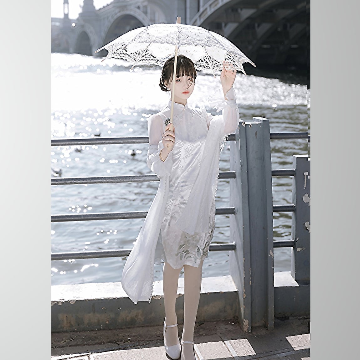 サブカル 服 地雷系 通販 ロリータ レトロ チャイナドレス ショール付き きれいめ 花柄 可愛い