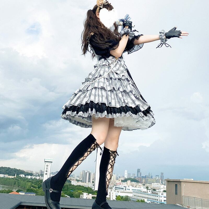 サブカル 服 地雷系 通販 ロリータ チェック柄 JSK ヘアアクセサリー ベルト ハンドスリーブ付きアイドル 地下アイドル バンド コンカフェ