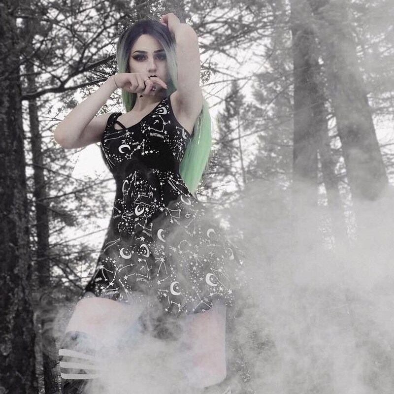 サブカル 服 地雷系 通販 ワンピ dark gothic 三日月 ハイウエスト フレアスカート ハードガール 闇かわいいバンギャ
