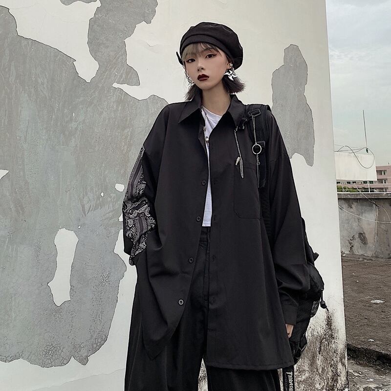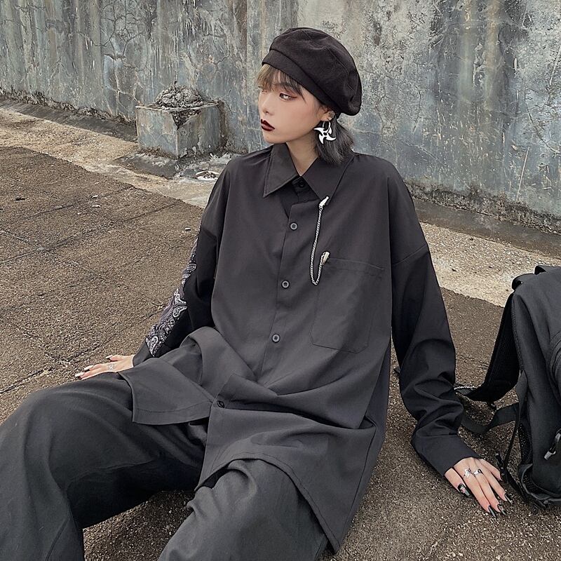 サブカル 服 地雷系 通販 シャツ ゴシック 長袖 オーバーサイズ ペイズリー柄 闇かわいい