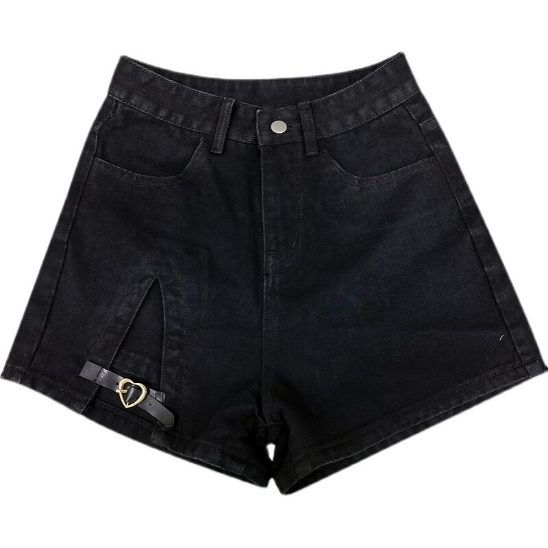 サブカル 服 地雷系 通販 Catwish ロリータ ショートパンツ デニム ハートバックル ベルト サイドスリット ガーリー 量産型 オルチャン