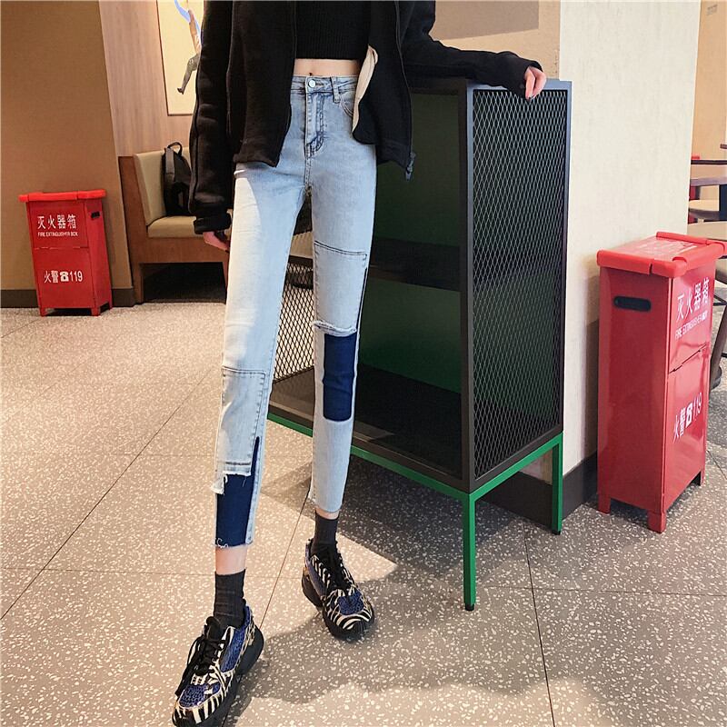 サブカル 服 地雷系 通販 デニム スキニー スリム ハイウエスト 細見せ スタイル 継ぎ接ぎ レトロ ダメージ