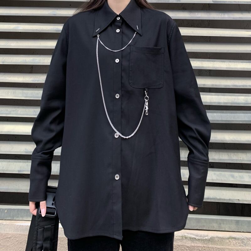サブカル 服 地雷系 通販 黒シャツ レトロ チェーン 闇かわいい ゴシック ストリート系バンギャ