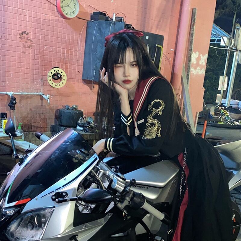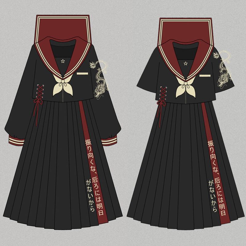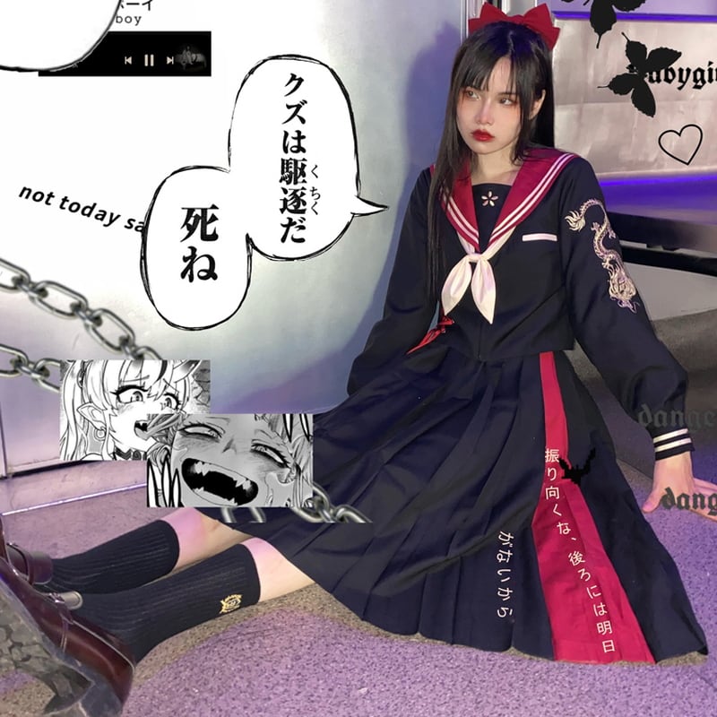 サブカル 服 地雷系 通販 闇かわいい セーラー服 プリーツスカート JK制服 ワイルドガール ドラゴン 刺繍 量産型 ガーリー