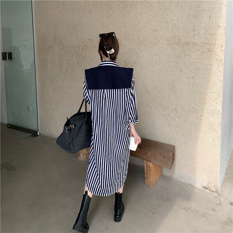 サブカル 服 地雷系 通販 ストライプ柄 シャツワンピ 大人 モード系 ゆったりめ 大人カジュアル クール