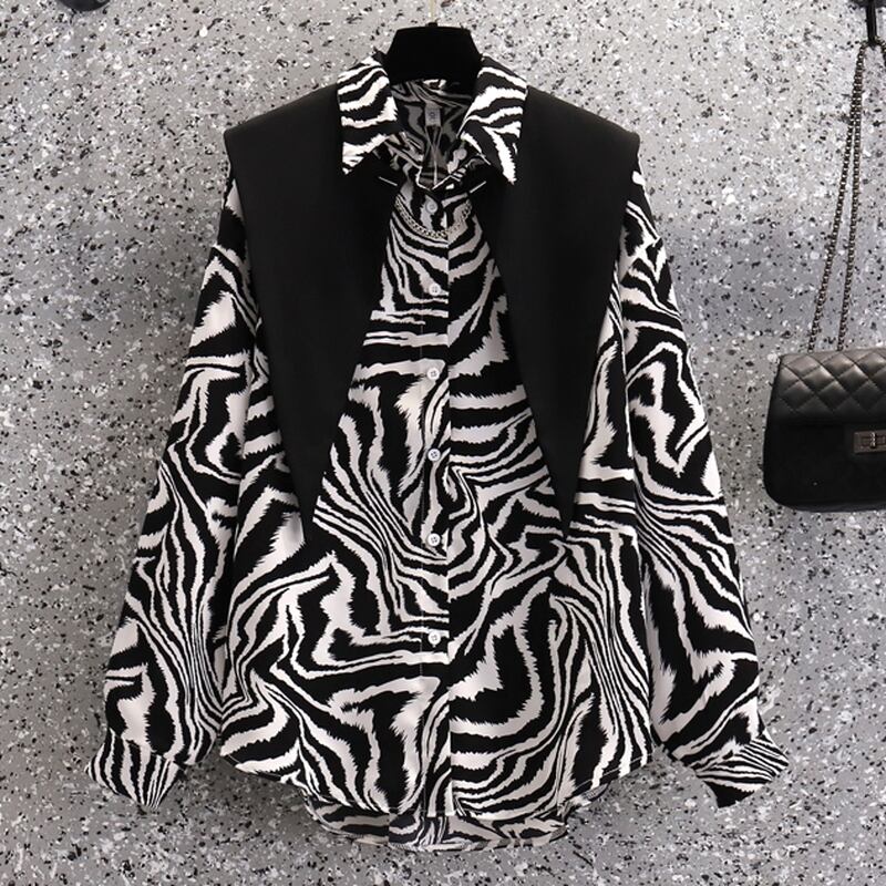 存在感抜群なアニマル柄にスクエアデザインのベストのツーピース