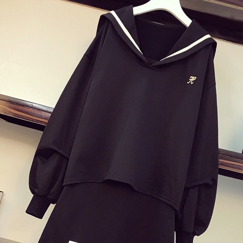 ヘルシーなノースリーブミニワンピにセーラー服風トレーナーの上下セット