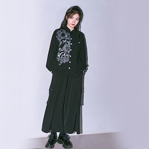 サブカル 服 地雷系 通販 チャイナ風服 チャイナ風服 古怪舎 ワイドパンツ 袴パンツ サイドポケット 刺繍 妖怪 キャラクター 闇かわいい ユニセックス ハイウエスト