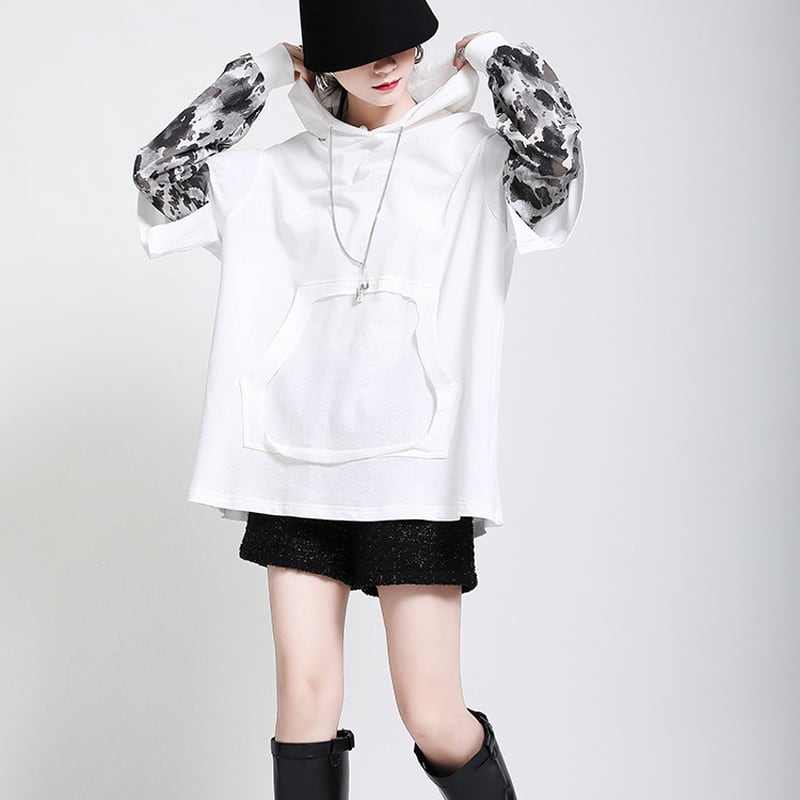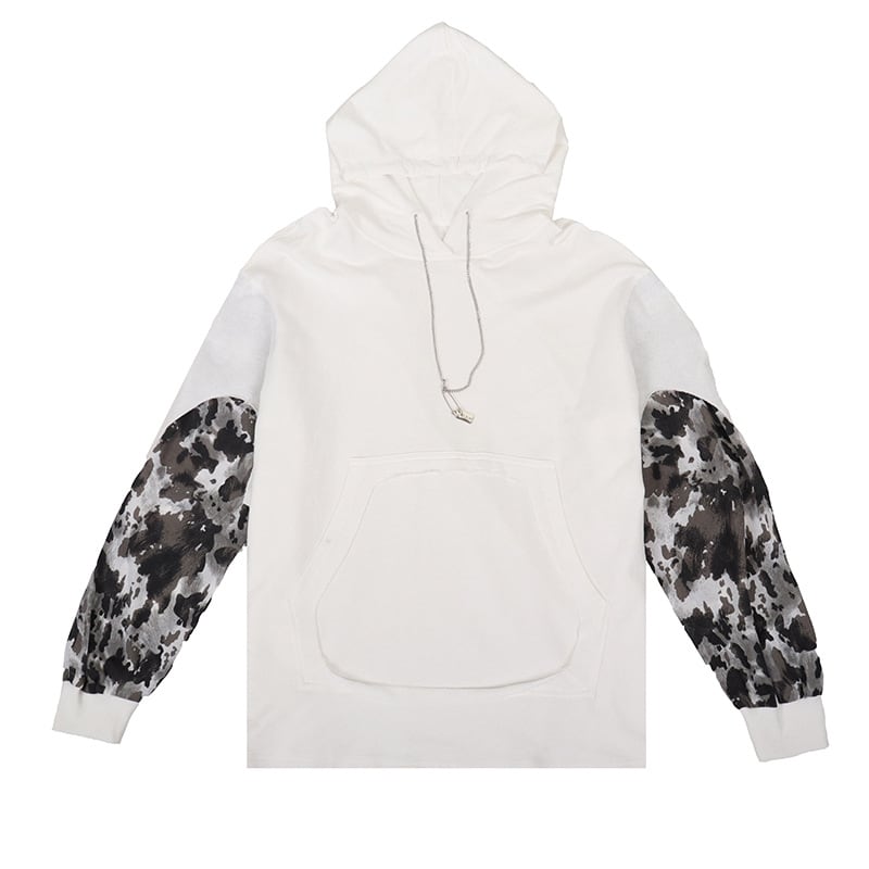 迷彩柄の長袖にパーカーがドッキングした異形デザイン