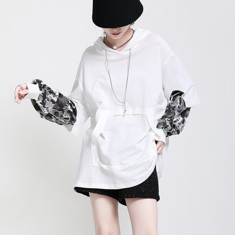 サブカル系 フェイク ツーピース パーカー 迷彩 大人 カジュアル スポーティ