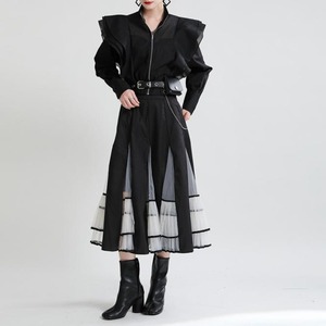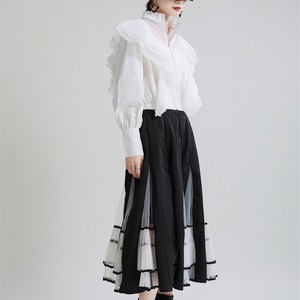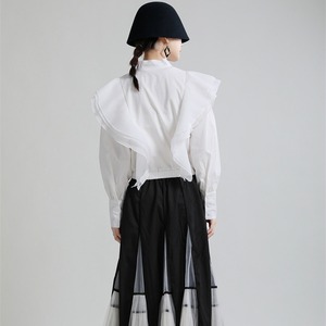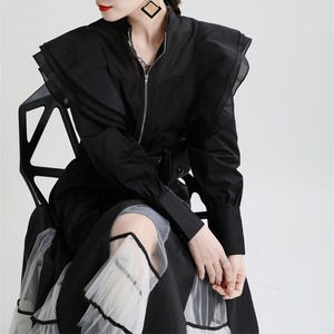 サブカル 服 地雷系 通販 モード系 スタンドカラー ZIPアップ メッシュ フリル シャツ 大人 dressy おしゃれ きれいめ