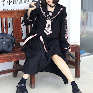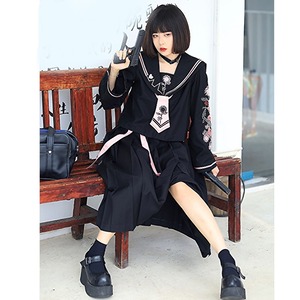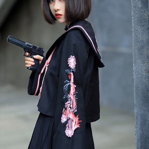 ドラゴンのスリーブにセーラーのピンクライン、ネクタイの花柄が病み可愛い