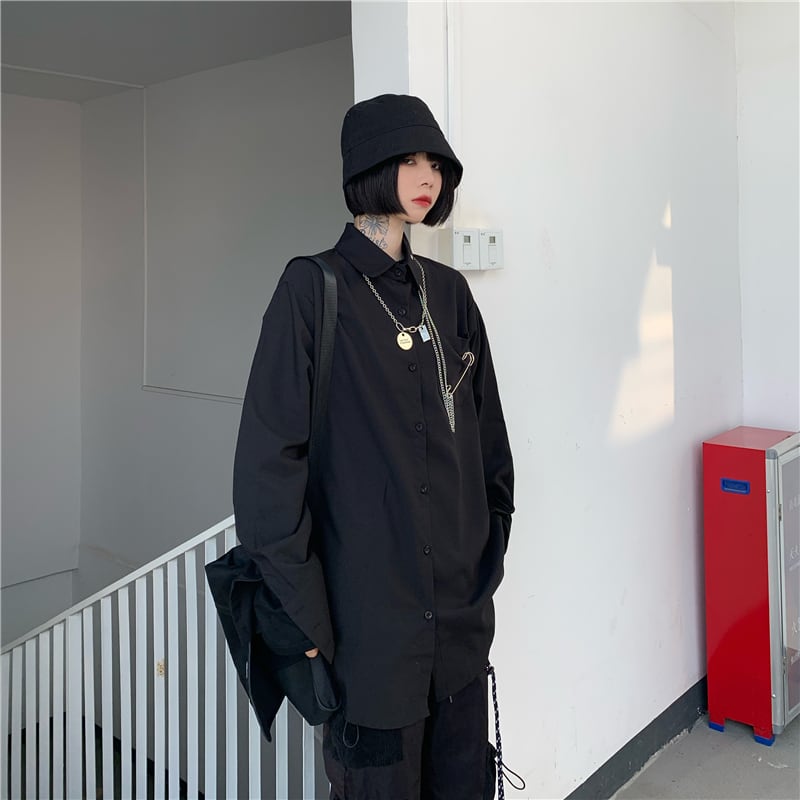 サブカル 服 地雷系 通販 長袖 黒シャツ 闇かわいい レトロ チェーン ストラップ カジュアル