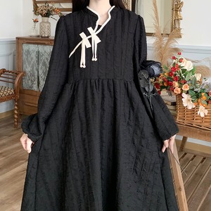 サブカル 服 地雷系 通販 ワンピ レトロ チャイナ風 ハイウエスト ネックリボン 闇かわいい 大人 ゴシック 甘め
