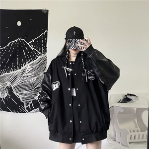 ゆったりめのオーバーサイズ、高見えなPUレザーのスリーブ、胸元は病み可愛いハートデザインがおしゃれ