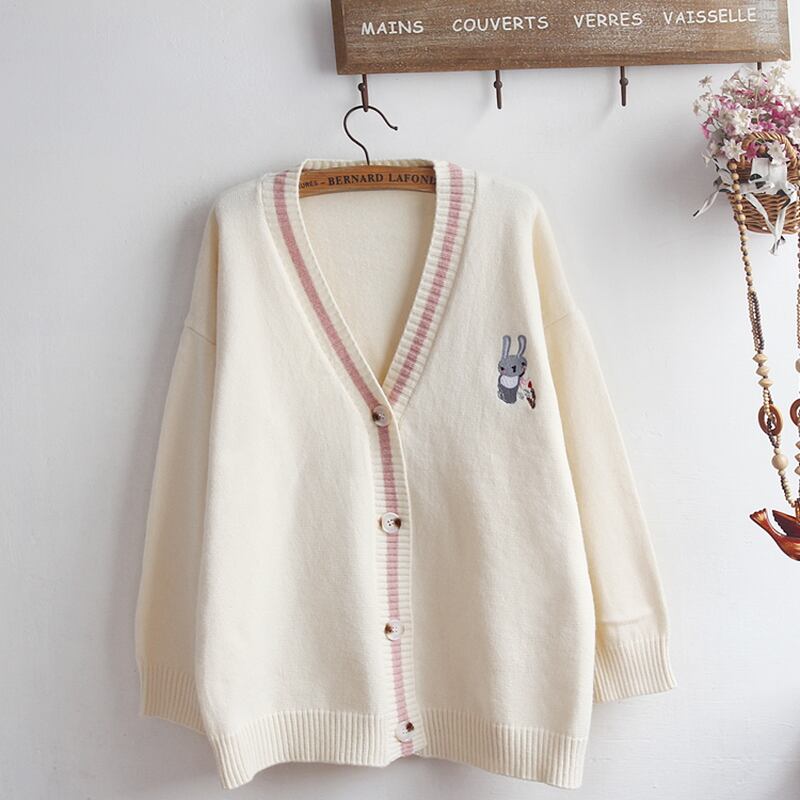 サブカル 服 地雷系 通販 ニット カーディガン うさぎ 刺繍 制服 深V字 カジュアル 量産型
