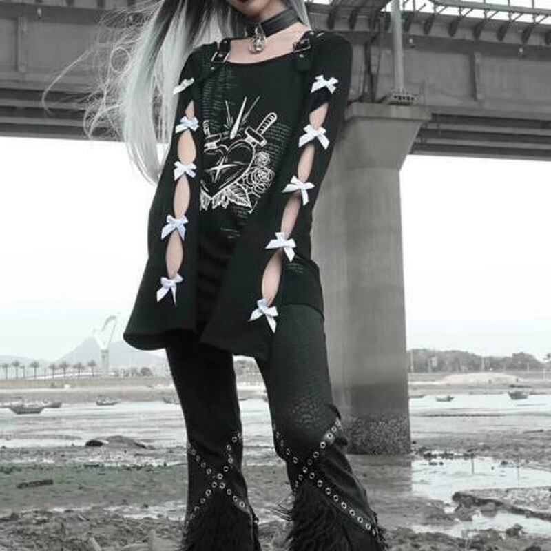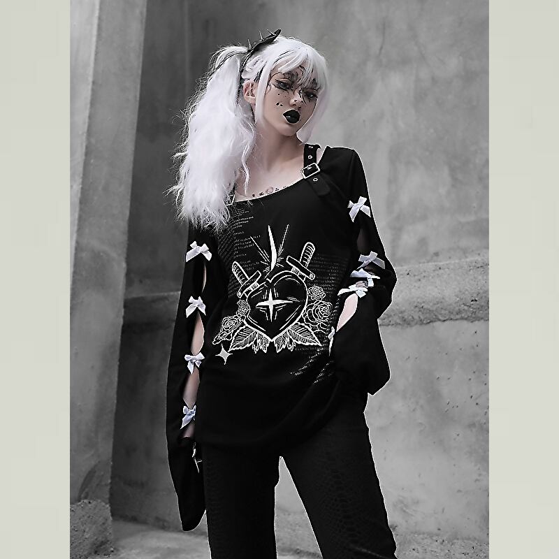 サブカル 服 地雷系 通販 BLOOD オリジナル セーター 編上げスリーブ 闇かわいい パンク ゴシックバンギャ