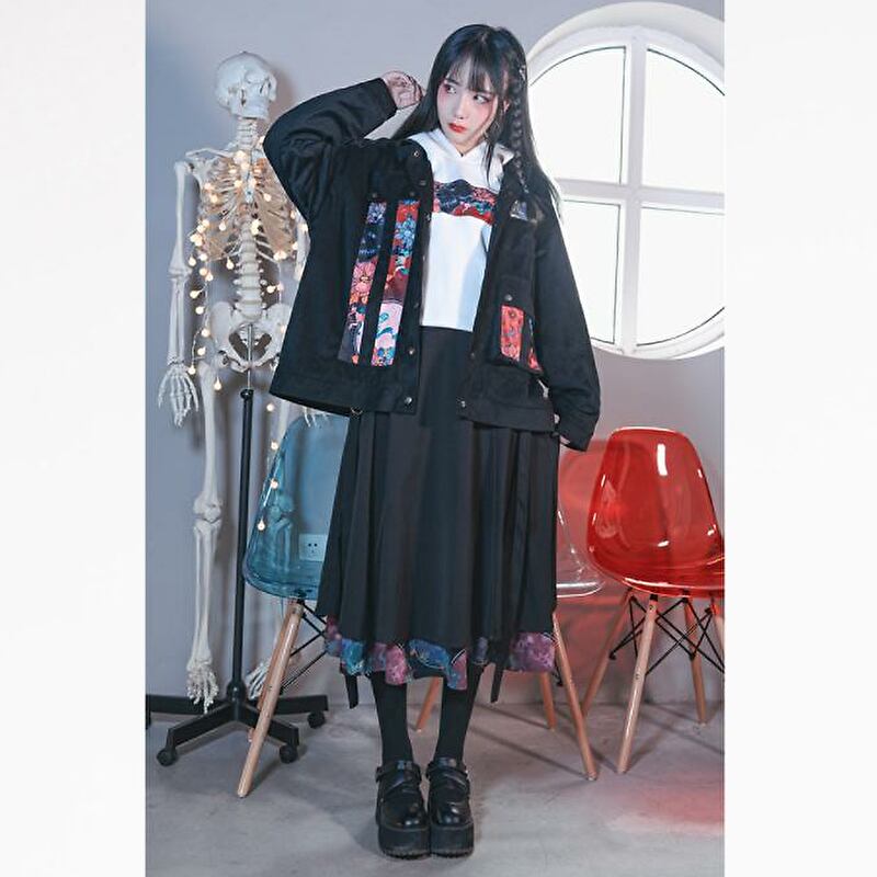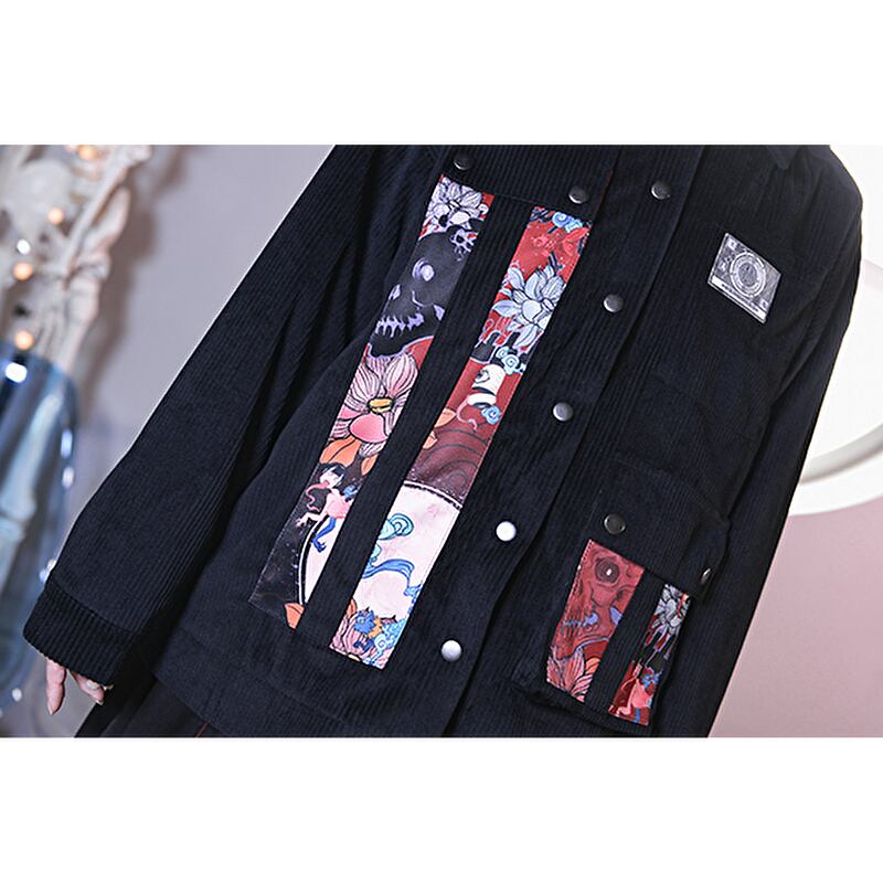 サブカル 服 地雷系 通販 チャイナ風服 チャイナ風服 古怪舎オリジナル アウター ジャケット バックプリント 防寒 キルティング 闇かわいい サブカルバンギャ