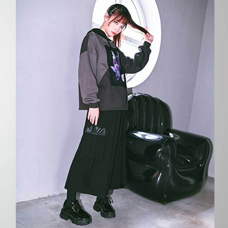 サブカル 服 地雷系 通販 チャイナ風服 チャイナ風服 古怪舎オリジナル パーカー butterfly バイカラー 裏起毛 フリース 闇かわいい サブカルバンギャ