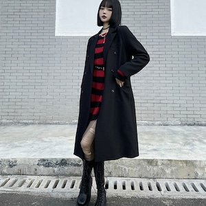 キッチリ感のあるノッチドラペルのロング丈、さらっと羽織ってストリート系カジュアルなラフ感もおしゃれなスタイルに仕上がります。