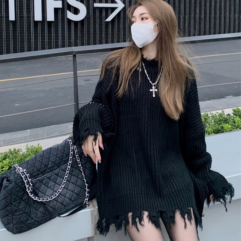 サブカル 服 地雷系 通販 ニット セーター 闇かわいい クラッシュ ダメージ加工 バンギャ