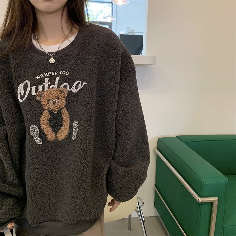 サブカル 服 地雷系 通販 セーター 厚手 もこもこ ボア 暖か クマちゃん カジュアル 韓国ファッション
