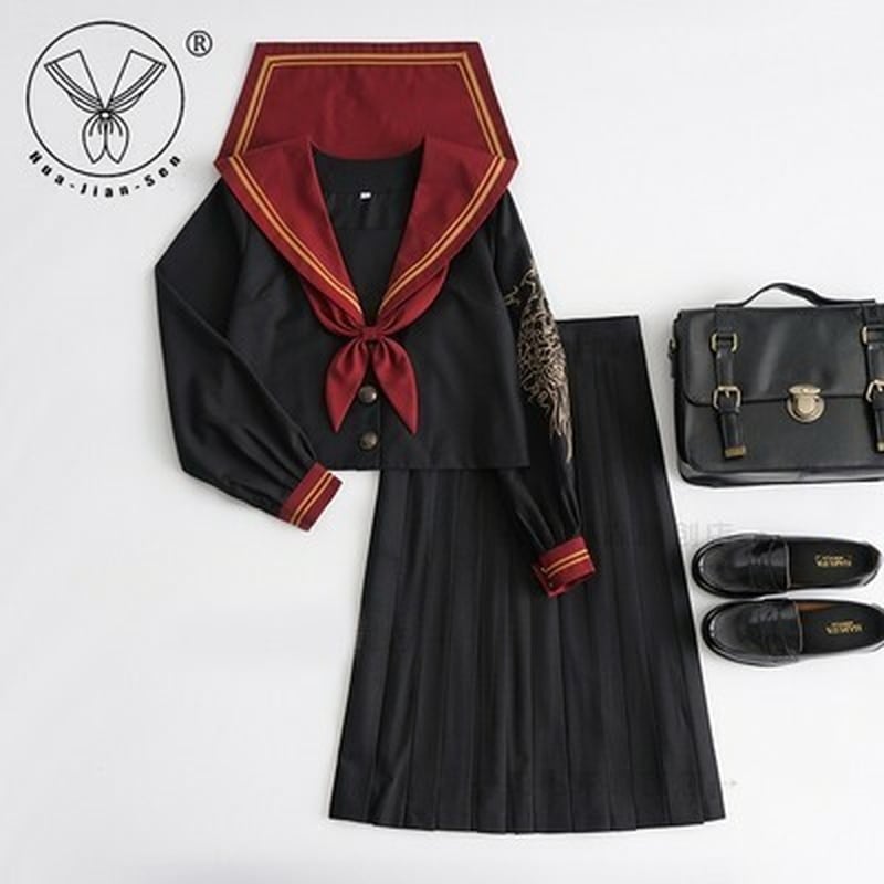 スリーブの鳳凰刺繍がビジュアル抜群なJKセーラー服のセットアップ