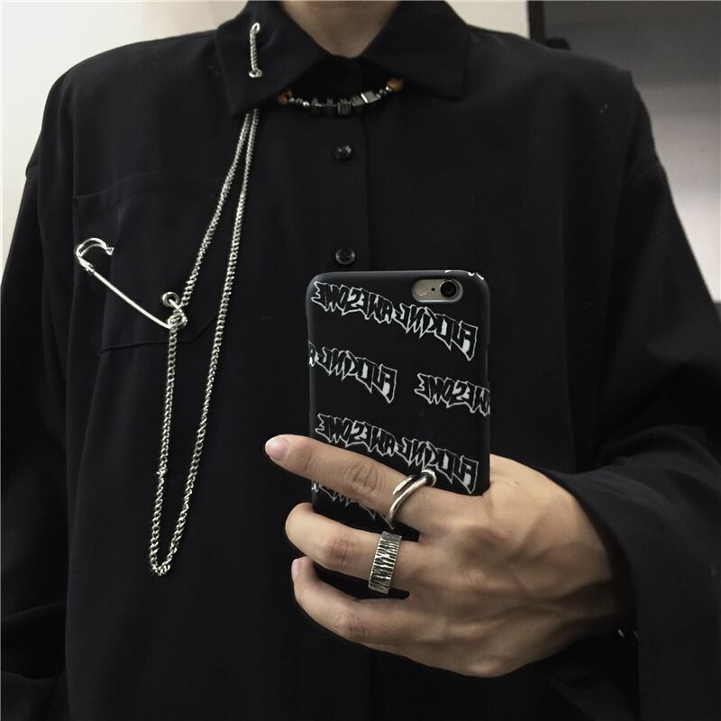 シックな黒シャツにチェーンストラップが病み可愛いスタイルに格上げ