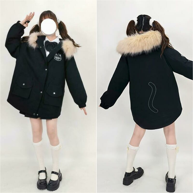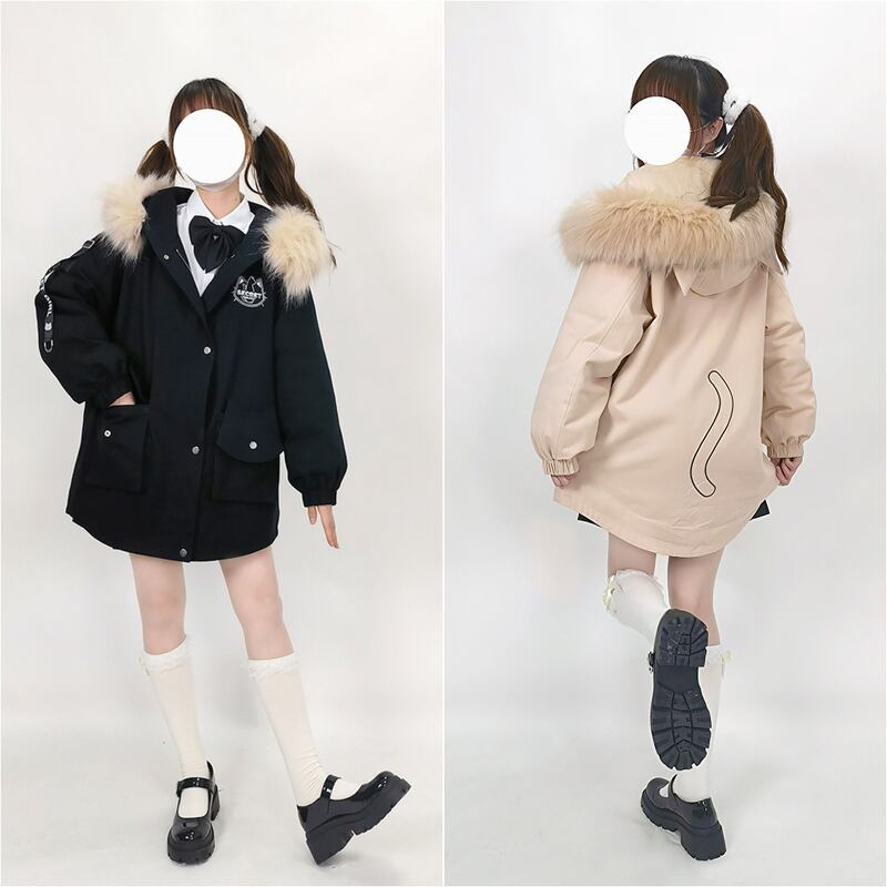 サブカル 服 地雷系 通販 Catwish アウター ロリータ ジャケット コート フード付き ねこ耳 ツイル 裏地 フリース厚手 防寒 可愛い 量産型
