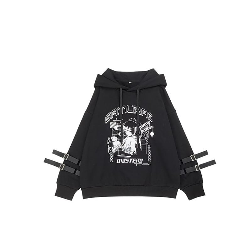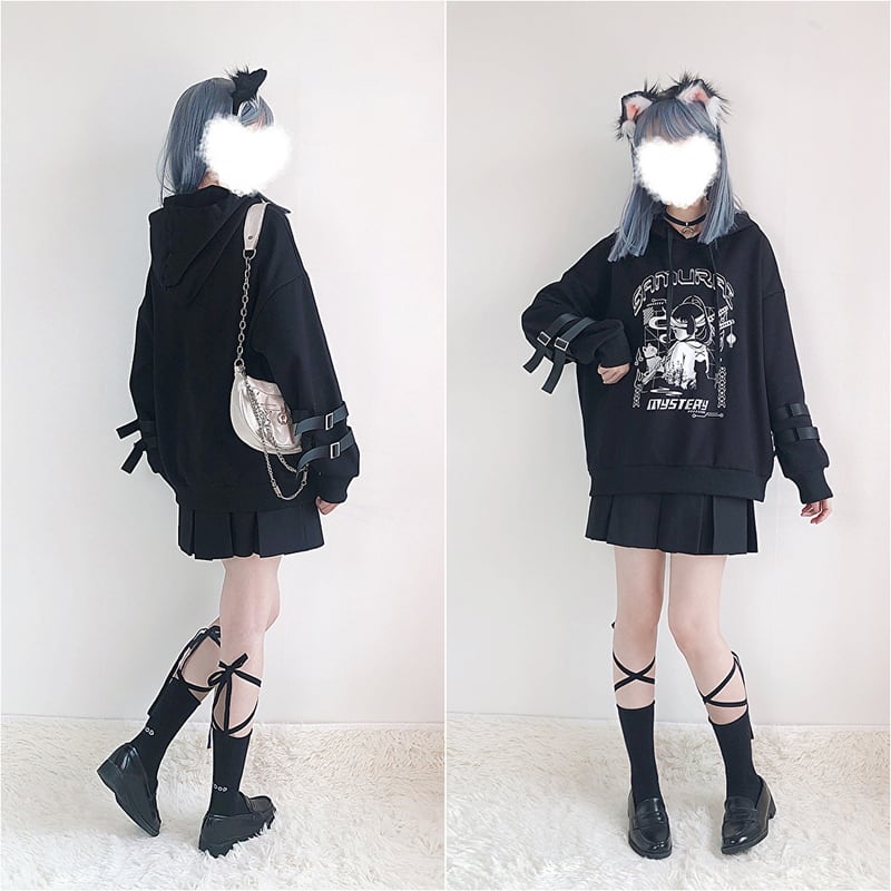 スリーブのダブルベルトがおしゃれでちょっぴり病み可愛いJKパーカー