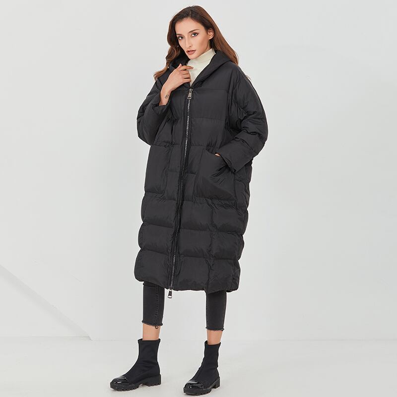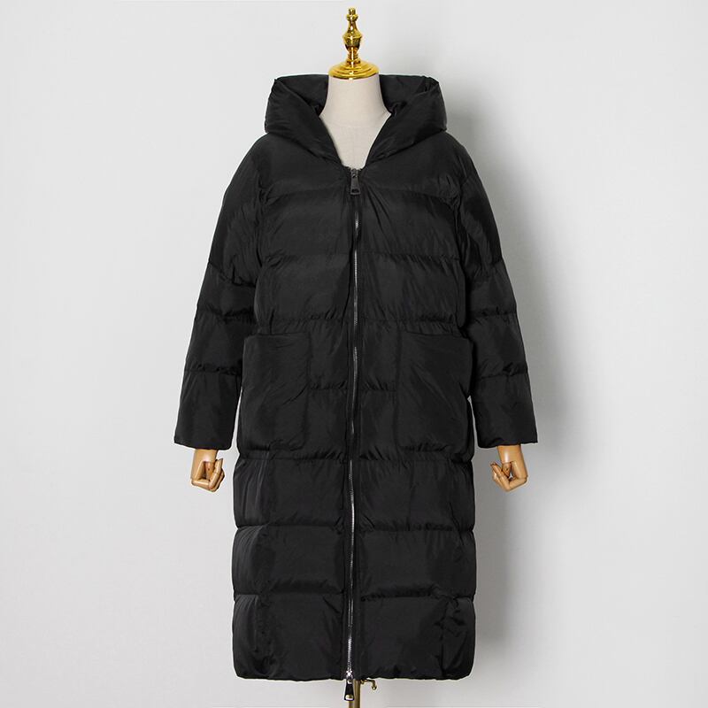 フード付きオーバーサイズのダウンコートです