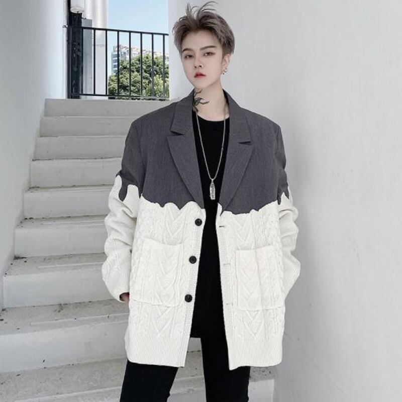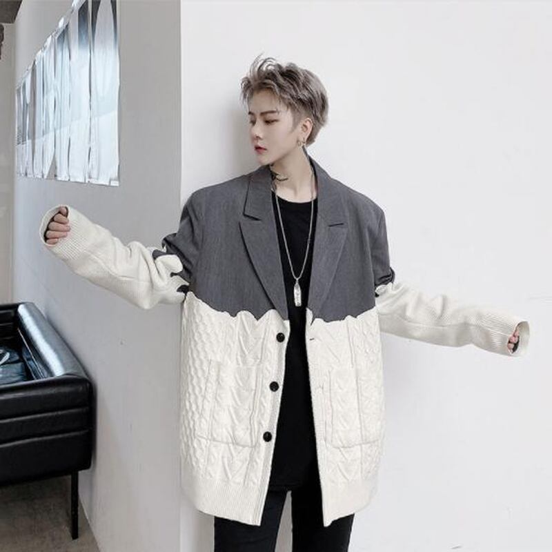 サブカル 服 地雷系 通販 メンズ ジャケット ニット 異素材 バイカラー dressy モード系 かっこいい ビッグシルエット オーバーサイズ ゴシック 韓国