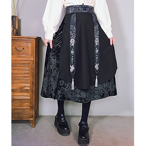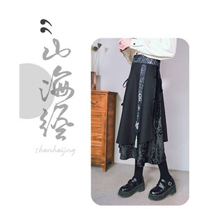 サブカル 服 地雷系 通販 チャイナ風服 チャイナ風服 古怪舎 山海経シリーズ 闇かわいい スカート Aライン レイヤード タッセル レトロ柄大人増し サブカル服