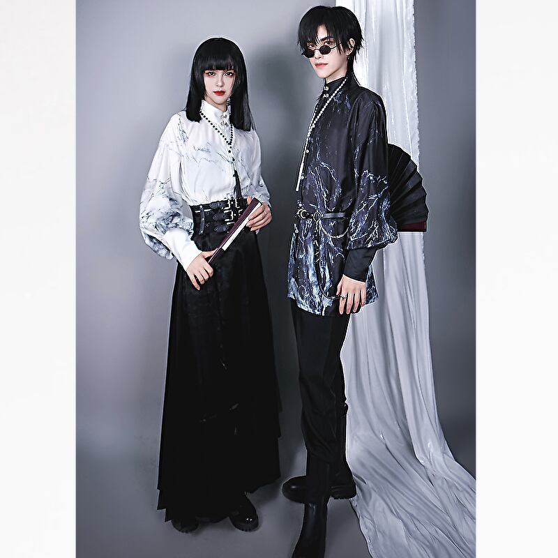 サブカル 服 地雷系 通販 長袖 シャツ レトロ ユニセックス バルーンスリーブ ドロップショルダー 中華風 暗黒系 闇かわいいゴシック