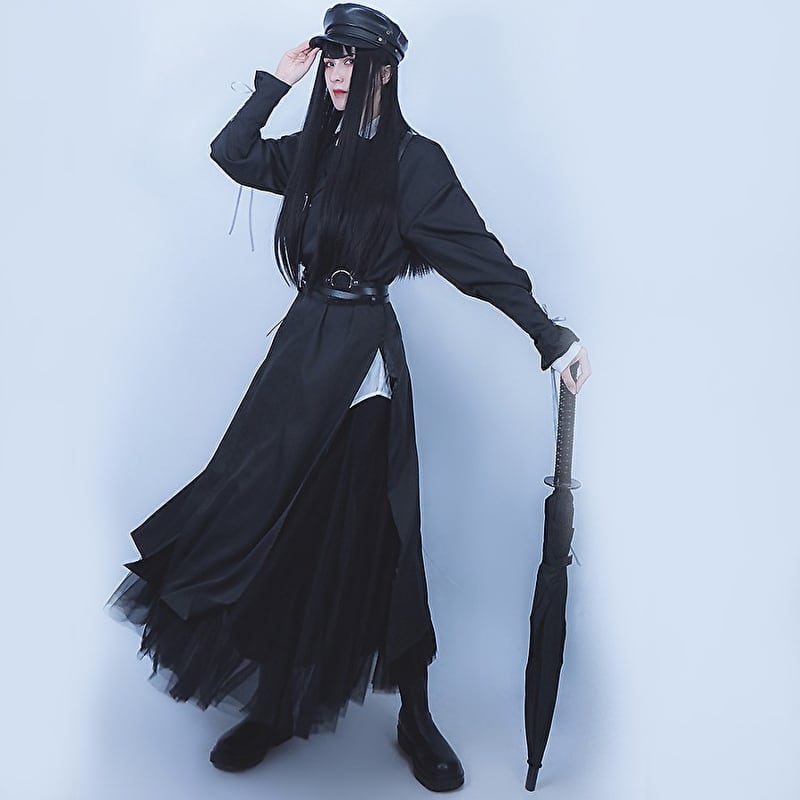 サブカル 服 地雷系 通販 ロングスカート レース レイヤード ハイウエスト Aライン ウエストベルト 暗黒系 闇かわいいゴシック