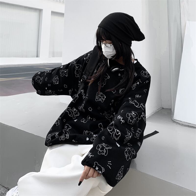 サブカル 服 地雷系 通販 トレーナー 裏起毛 bear くまちゃん プリント かわいい カジュアル 韓国ファッション