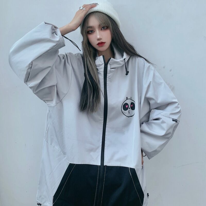 サブカル 服 地雷系 通販 ウィンドブレーカー パーカー ZIPアップ うさぎ耳 バイカラー 韓国ファッション