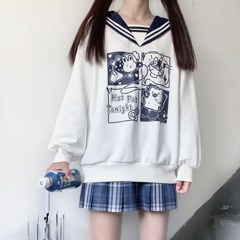 サブカル 服 地雷系 通販 トレーナー セーラー風 プリント JKスタイル 可愛い ロリィタ カジュアル 量産型 韓国ファッション