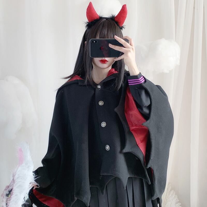 病み可愛い悪魔スタイルの厚手ウールのマント