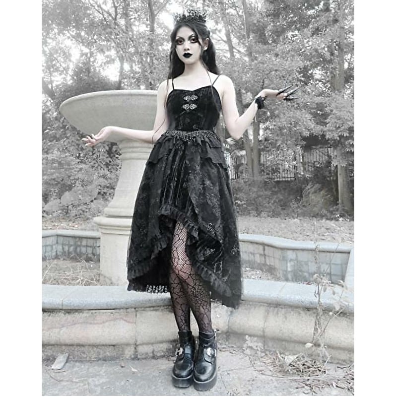 サブカル 服 地雷系 通販 ジャンパースカート レトロ ハードゴシック アシンメトリー フリル スカート ゴシック