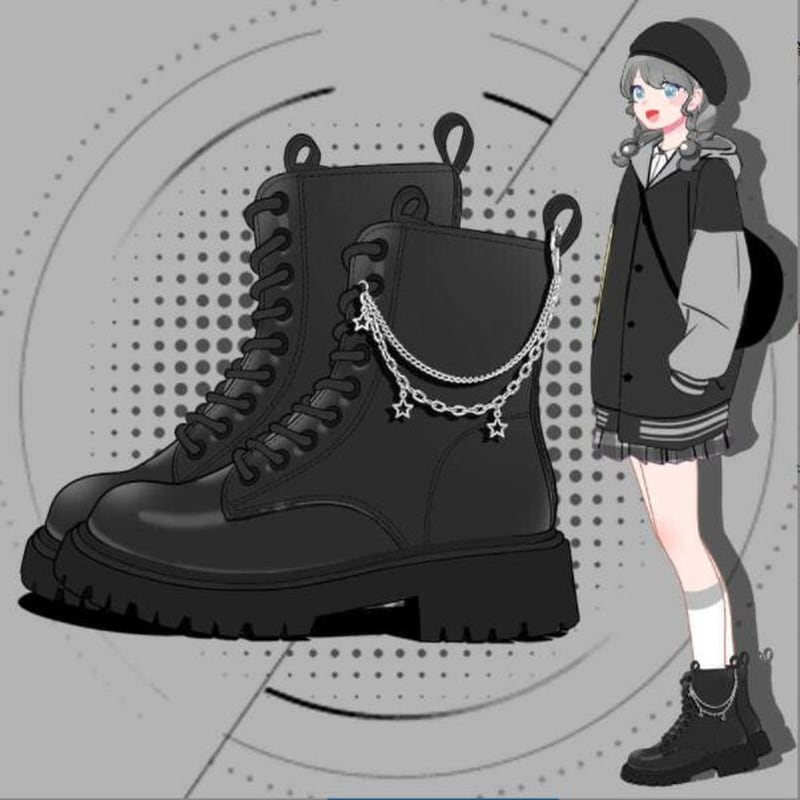 サブカル 服 地雷系 通販 ブーツ ショート スターチェーン PUレザー 編み上げ サイドZIPアップ